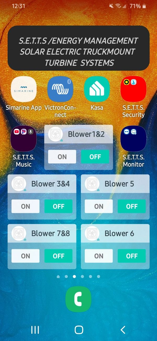 Our S.E.T.T.S system offers remote control of all 8 vacuum blowers in the system as well as monitoring the outside of the work van to keep things safe and secure. . Cameras Record to an SD card as well as the cloud and connected to an internet tower that is part of the Solar Electric Truckmount Turbine System. Keeping all our customers safe and secure.